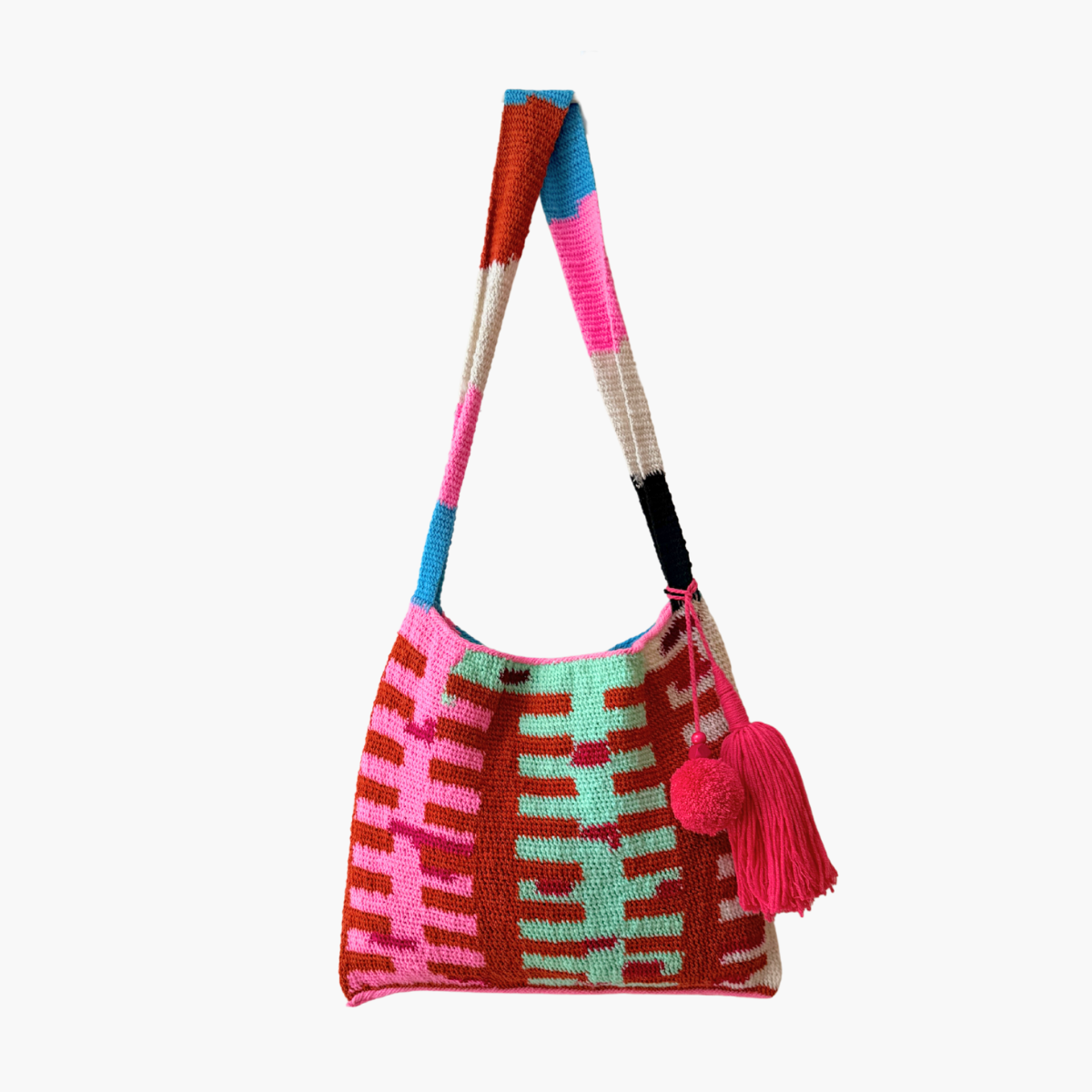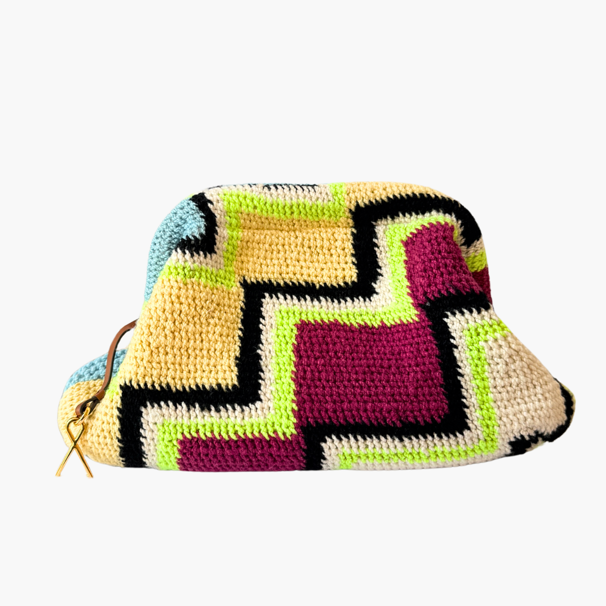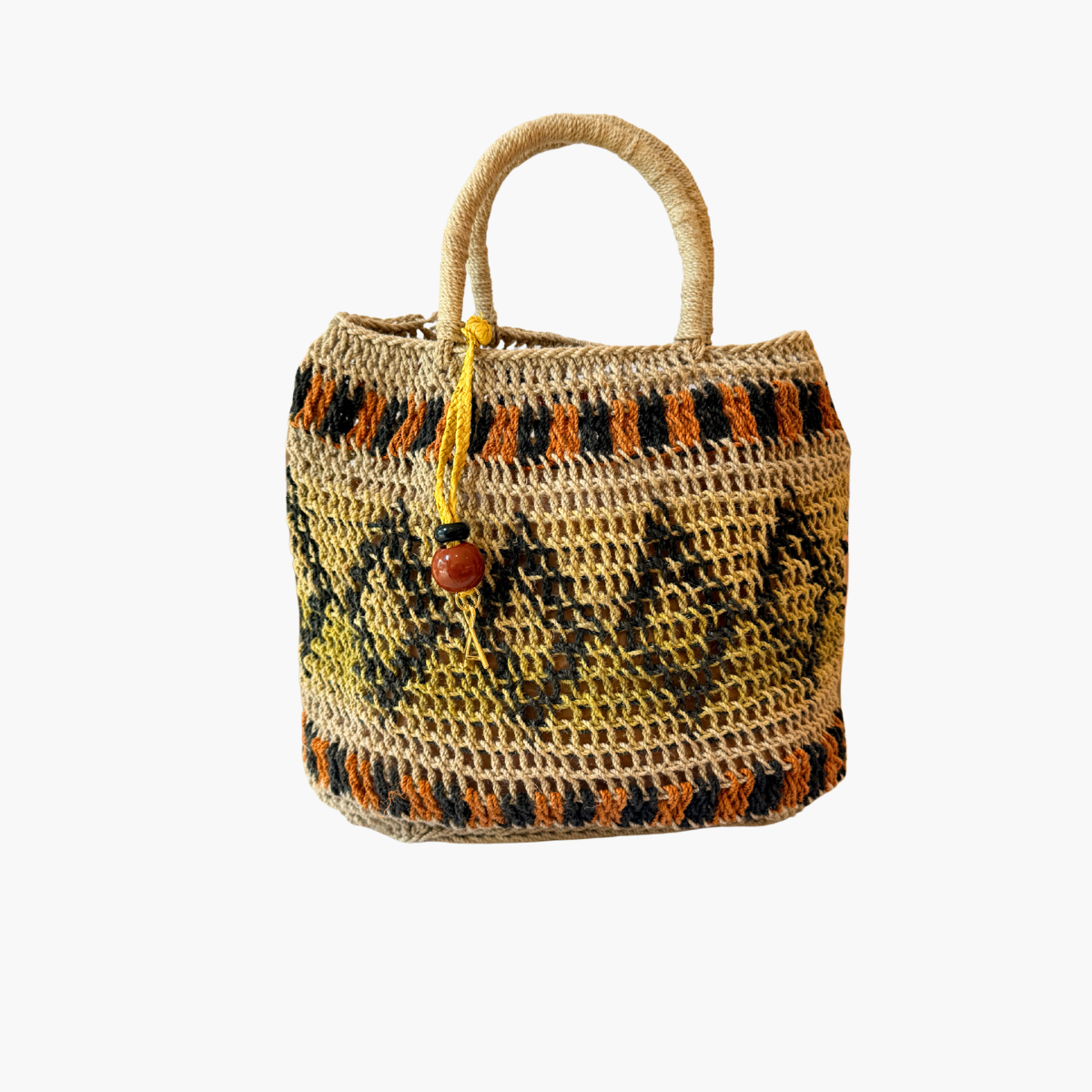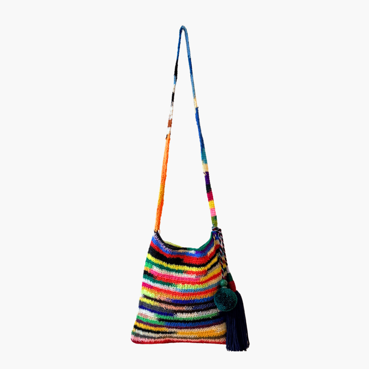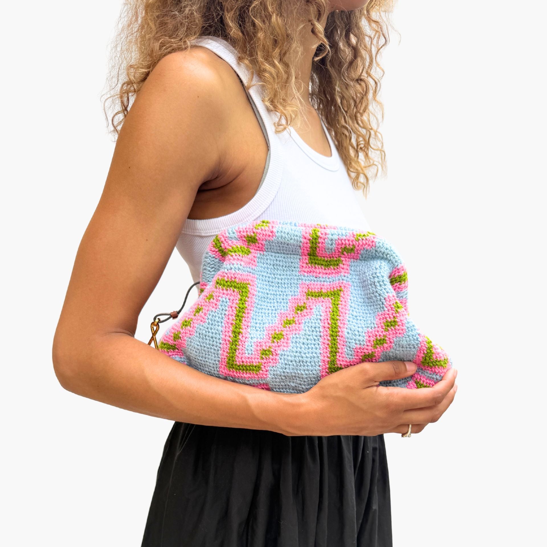 Much like the joyful colour palettes she chooses, Tama has the most wonderful spirit and energy. She lives near Goroka with her 14-year-old son, and from the income she makes through Bilum Tama is able to send him to school and provide essentials for her family.