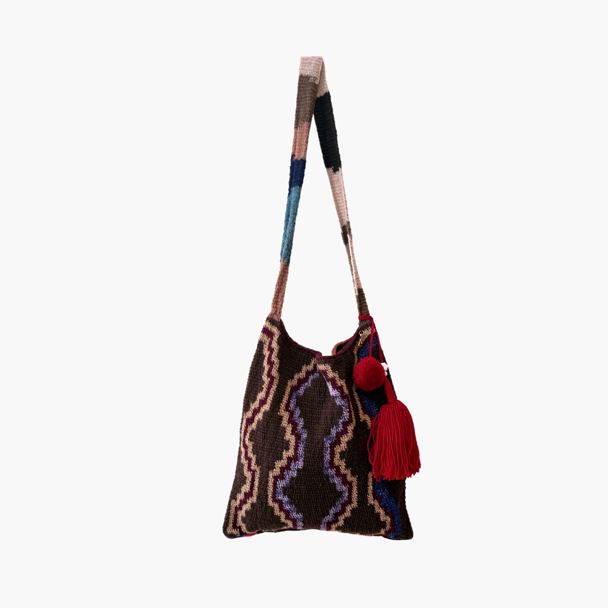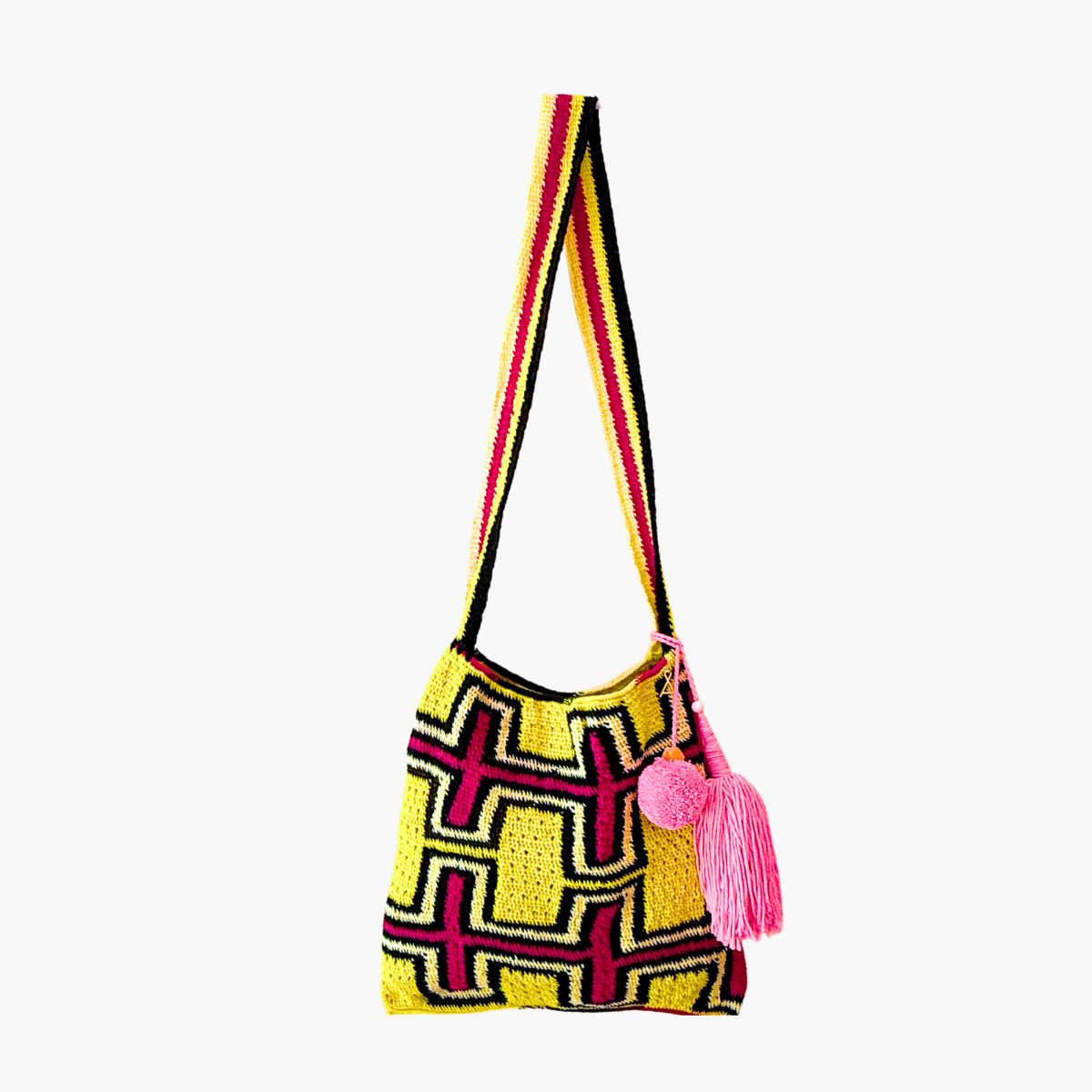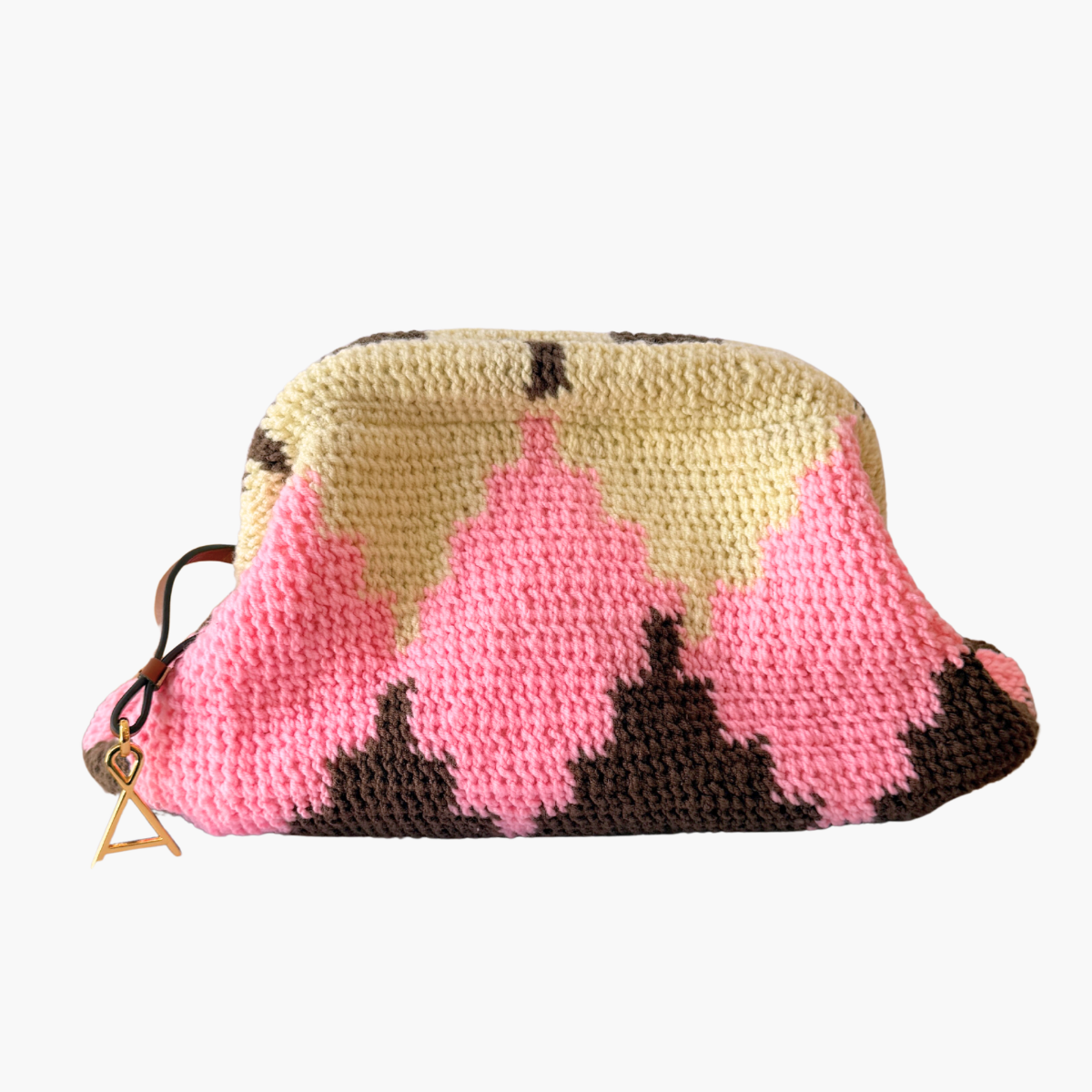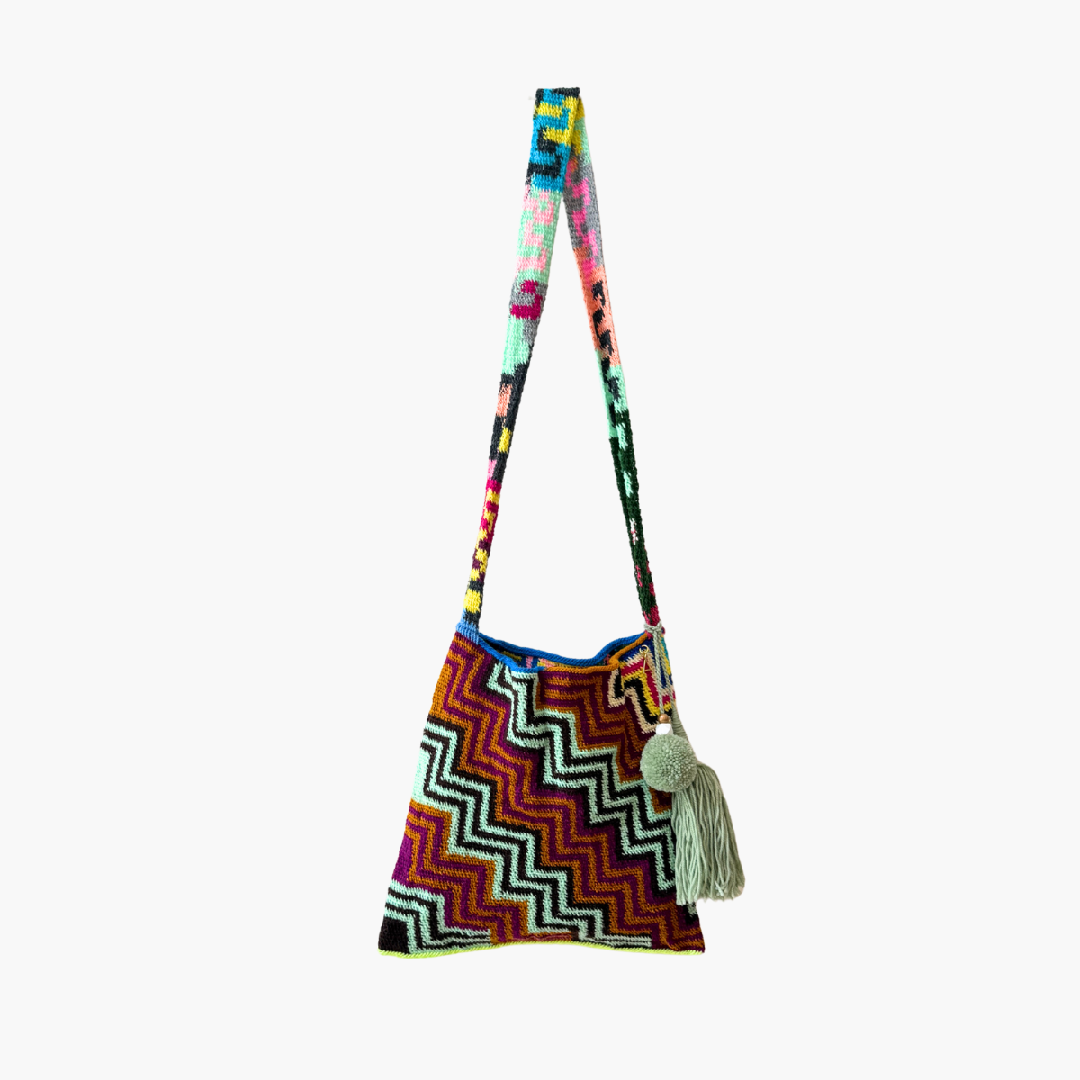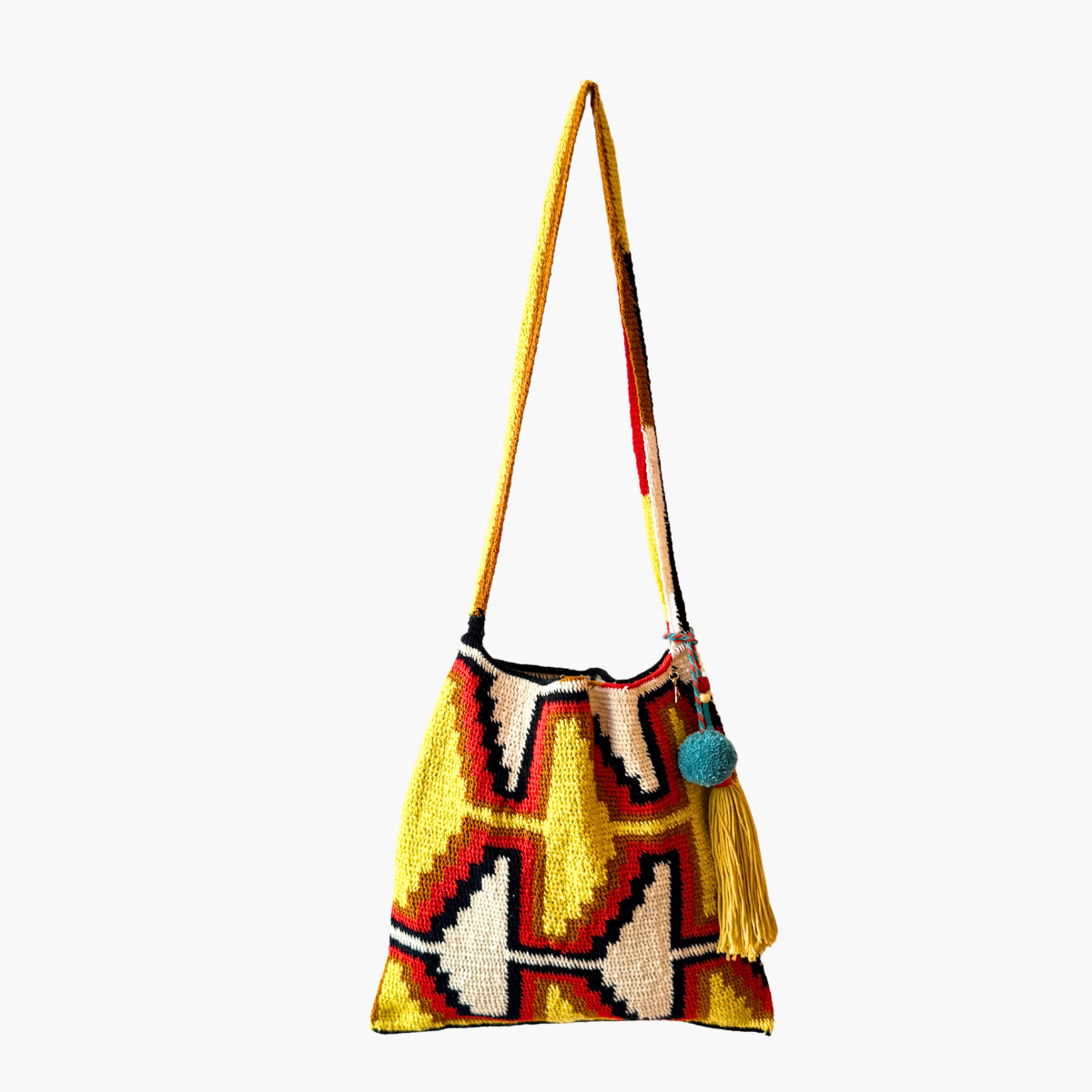 Much like the joyful colour palettes she chooses, Tama has the most wonderful spirit and energy. She lives near Goroka with her 14-year-old son, and from the income she makes through Bilum Tama is able to send him to school and provide essentials for her family.