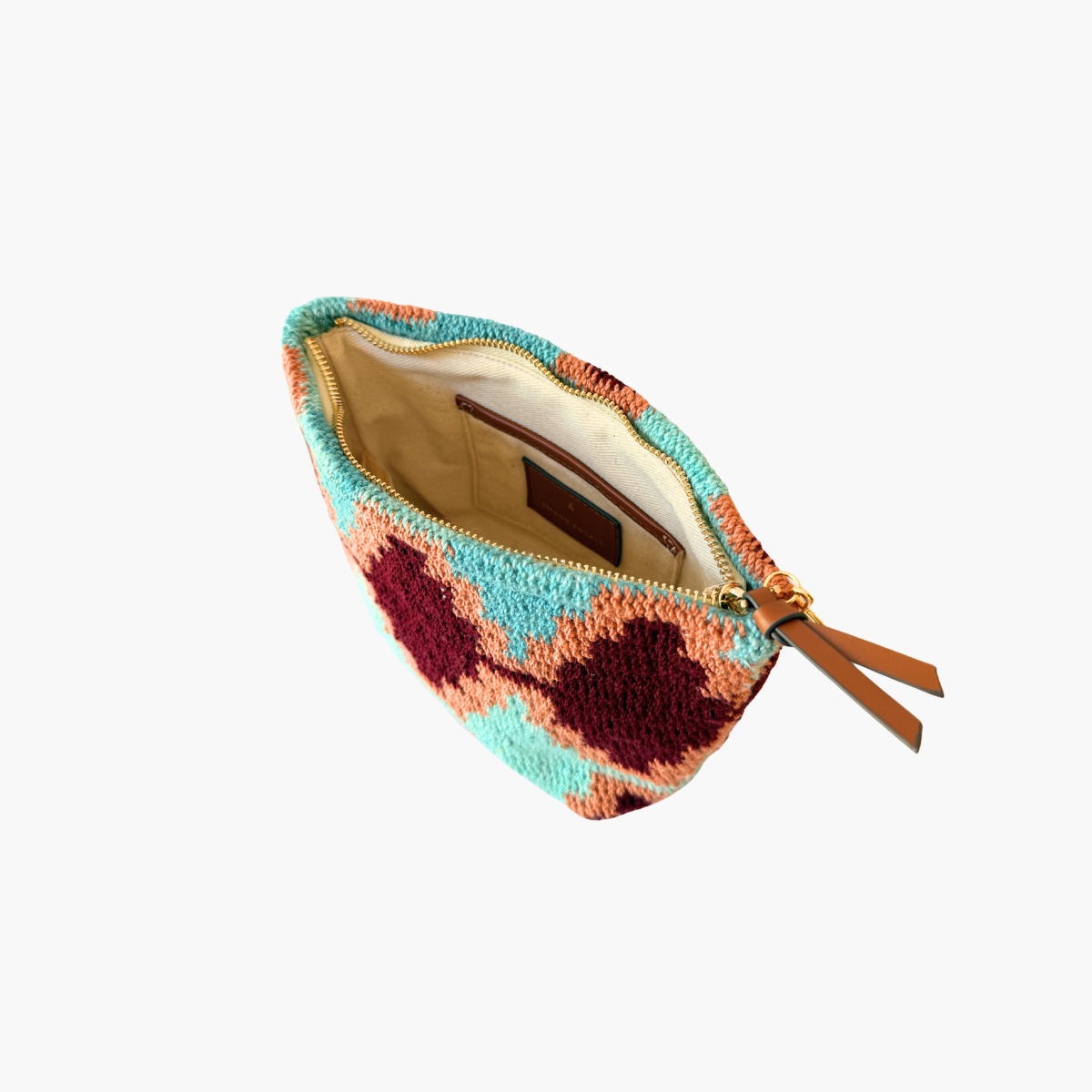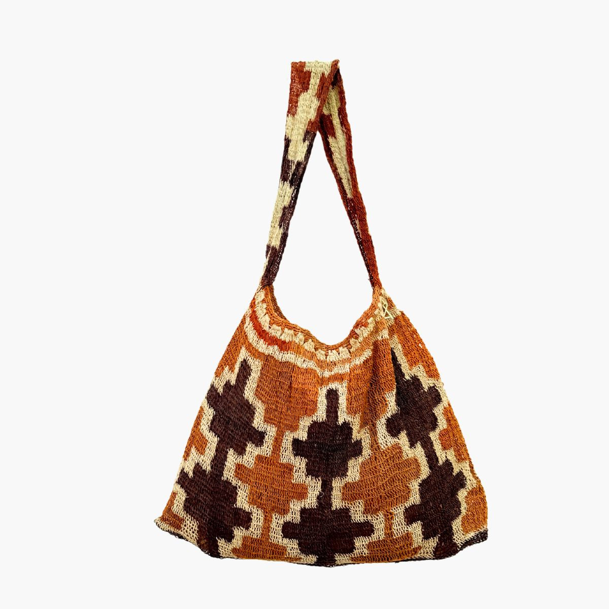 Much like the joyful colour palettes she chooses, Tama has the most wonderful spirit and energy. She lives near Goroka with her 14-year-old son, and from the income she makes through Bilum Tama is able to send him to school and provide essentials for her family.