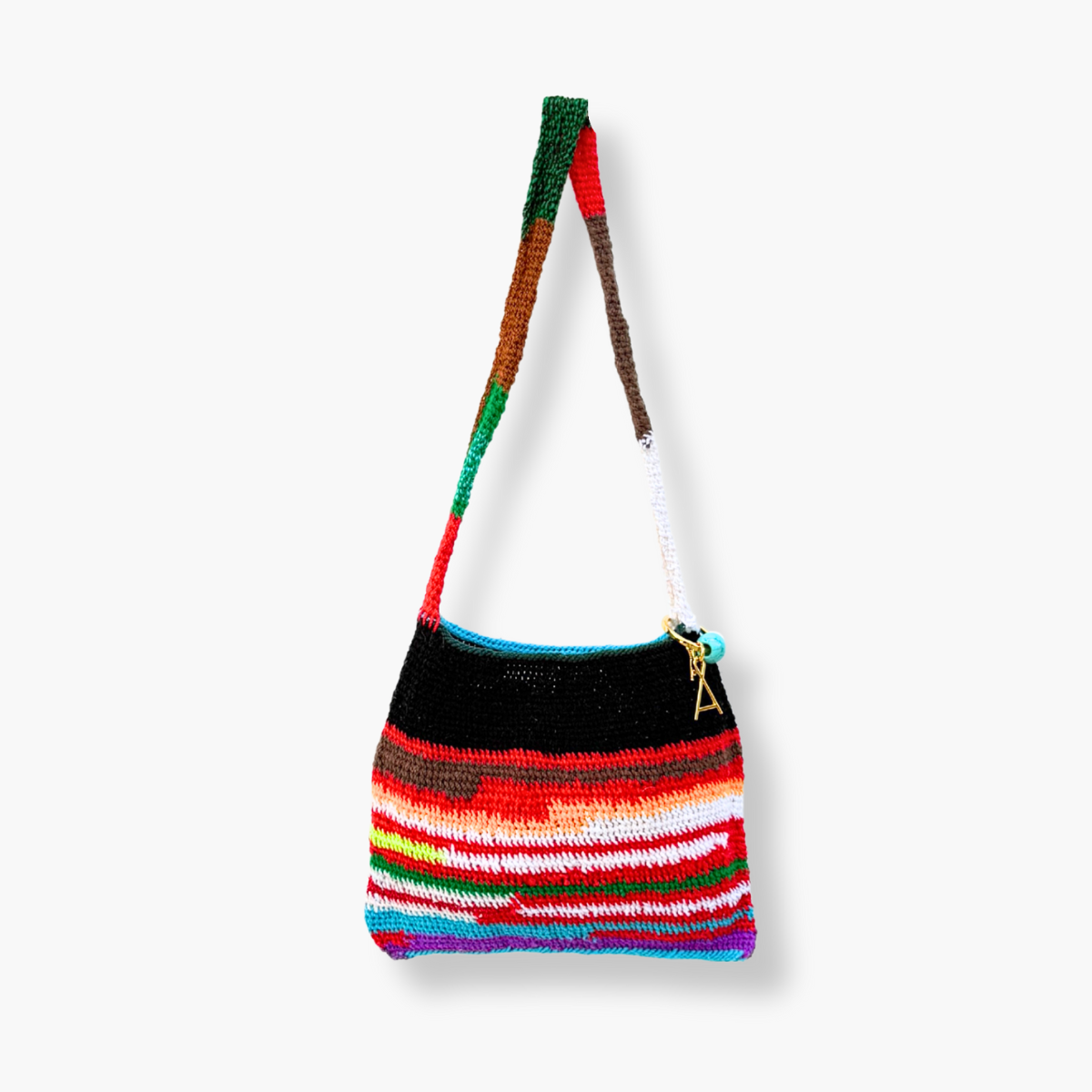 Working with either unravelled yarn from jumpers, or handwoven fibres sourced from surrounding vegetation, together with natural dyes made from plants, ochres and berries, each bag tells a story of strength and hope. It is our goal is to make change through empowering these inspiring communities.