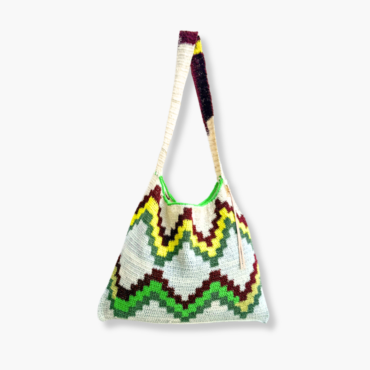 These Bilum are joyful works of art, handcrafted by female artisans living in either the Highlands region or Port Moresby squatter settlements, in Papua New Guinea. These weavers have a unique flair for colour and pattern, their vibrant designs capture their spiritual and cultural heritage.