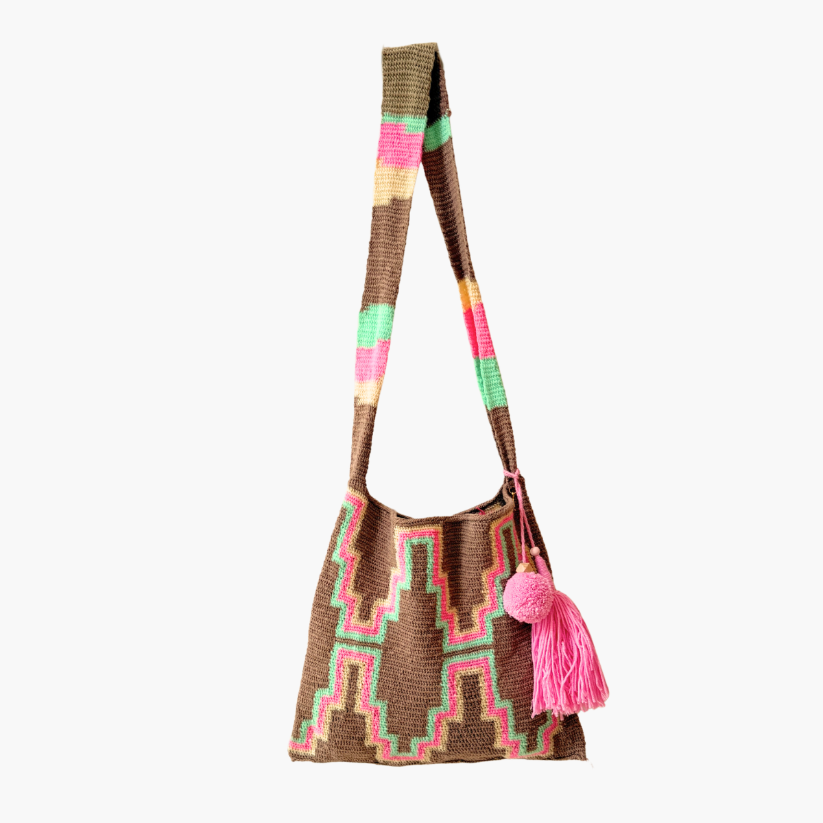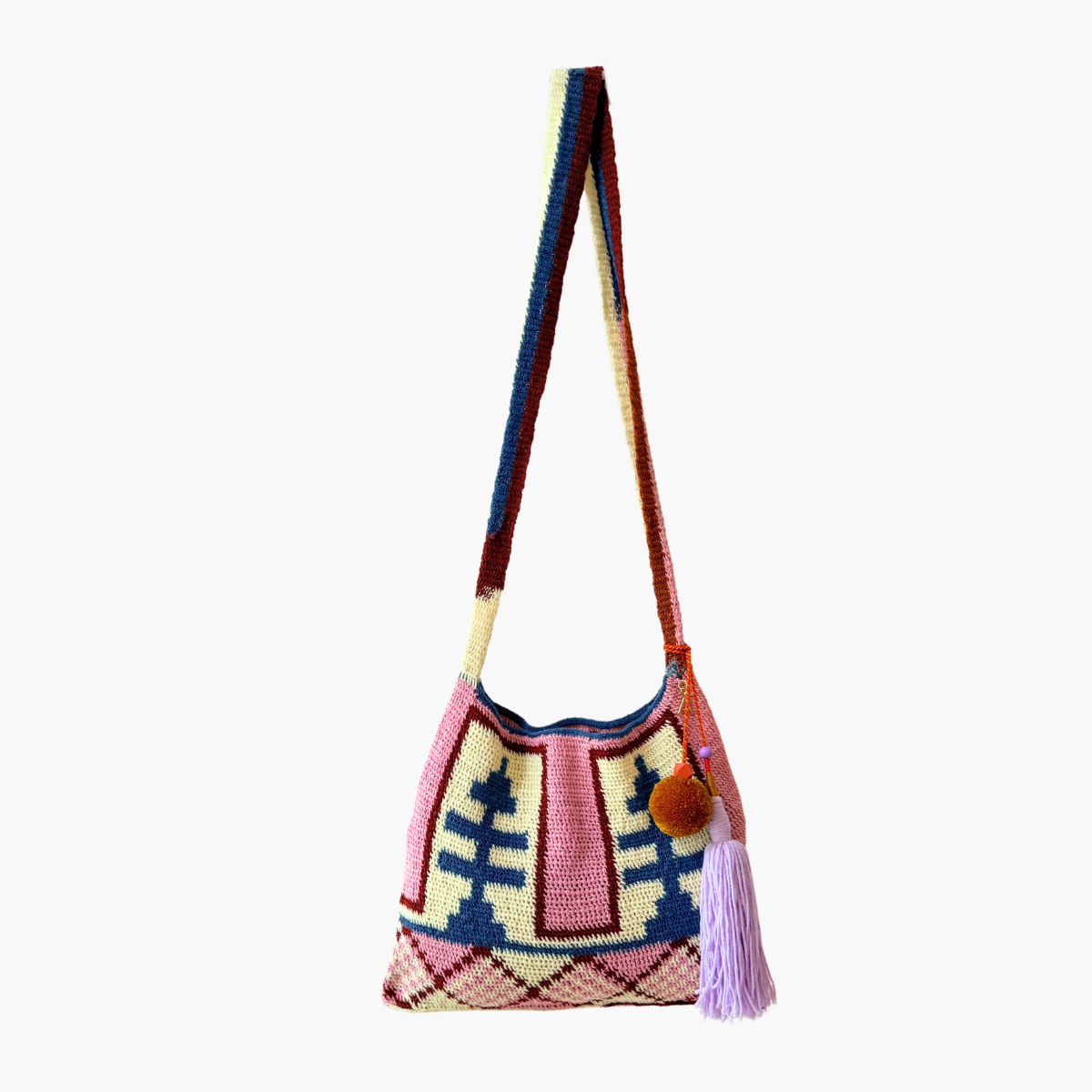 The Highlands is a chain of mountain ranges that run from the east to the west of PNG. Bilum from this region are typically woven in bright, bold patterns, using wool, cotton and acrylic yarn. Each bilum serves a multifunctional, practical purpose as well as having cultural significance.